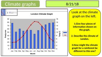 Climate graphs - Weather and climate - GCSE Geography Revision - BBC ... Climate graphs show average rainfall and temperatures typically experienced in a particular location. The temperature is shown on a line graph, and rainfall on a bar graph. They are usually...