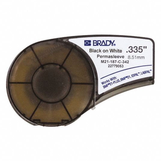 BMP21 Brady Series Label Cartridge 0.187 in. W B342 PermaSleeve Heat ... This item: Brady Series Label Cartridge 0.187 in. W B342 PermaSleeve Heat-Shrink Polyolefin, Black on White Labels $48.95 Brady BMP21 Series Label Cartridge 0.5 in. W x 21 ft. L B595 Indoor/Outdoor Vinyl Cartridge, White on Black Labels $21.45 Brady BMP21 Series Label Cartridge 0.250 in. W x 7 ft. L B342 PermaSleeve Cartridge, Yellow Labels $53.44