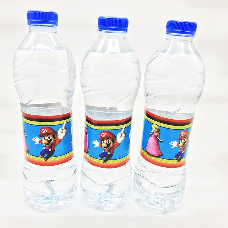 12pcs/lot Super Mario theme bottle labels Super Mario Bros theme birthday party decoration Super Mario Bros water bottle label